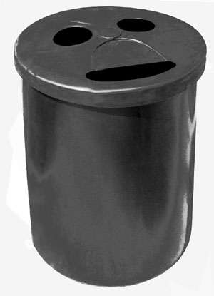 Three rigid recycle liners inside a rugged outdoor recycle container